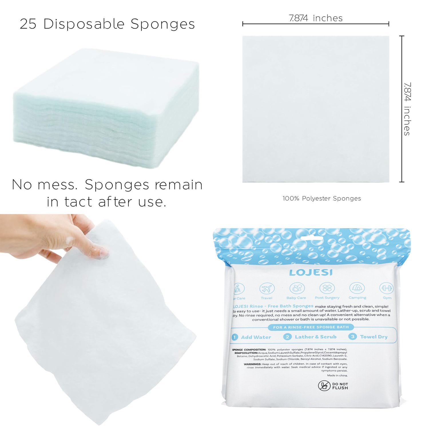 🎁Freshness Anytime, Anywhere! 25 Large Rinse-Free Bathing Wipes for Adults